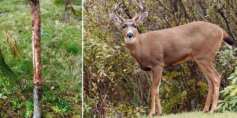 During the winter, the bucks come through and aggressively scrape our trees, rubbing their antler velvet, killing the small seedlings, damaging the bark on pine trees and snapping rhododendrons in half.
