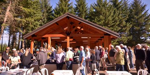 About 140 people, including OFRI staff, board members, pavilion donors and other guests, gathered for the dedication in the Rediscovery Forest at The Oregon Garden in Silverton.