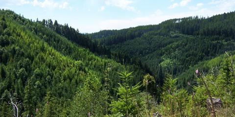 In western Oregon, for example, clearcutting is often used in Douglas-fir forests because new seedlings depend on direct sunlight to grow quickly. However, clearcuts are limited in size to 120 acres, and adjacent units may not be clearcut until seedlings are well-established and considered free-to-grow – generally four to six years. Buffers of trees – called riparian areas – of various widths must be left along waterways, depending on the width of the river or stream. Most importantly, reforestation is required within two planting seasons after harvest.
