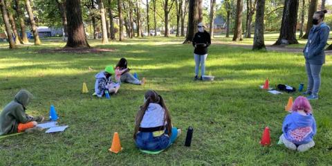 I was in a forested park right next to an elementary school in Salem. The park’s old growth Douglas-Fir and oak trees made it the perfect setting to learn about trees, forests and natural resources. It felt good to be getting ready to teach students outdoors again. Over the last year, my position description had dramatically changed because of the pandemic and the shift to remote learning for most Oregon students. Rather than being outside with students helping them discover the natural world, I and other environmental educators were trying to present the topic of natural resources over a screen. But every environmental educator would tell you that the best way to learn about our natural world is to be out there in it, creating a shared experience, helping students step out of their comfort zones, discover something new, and take on a new perspective. All of this was hard to achieve through a computer screen.