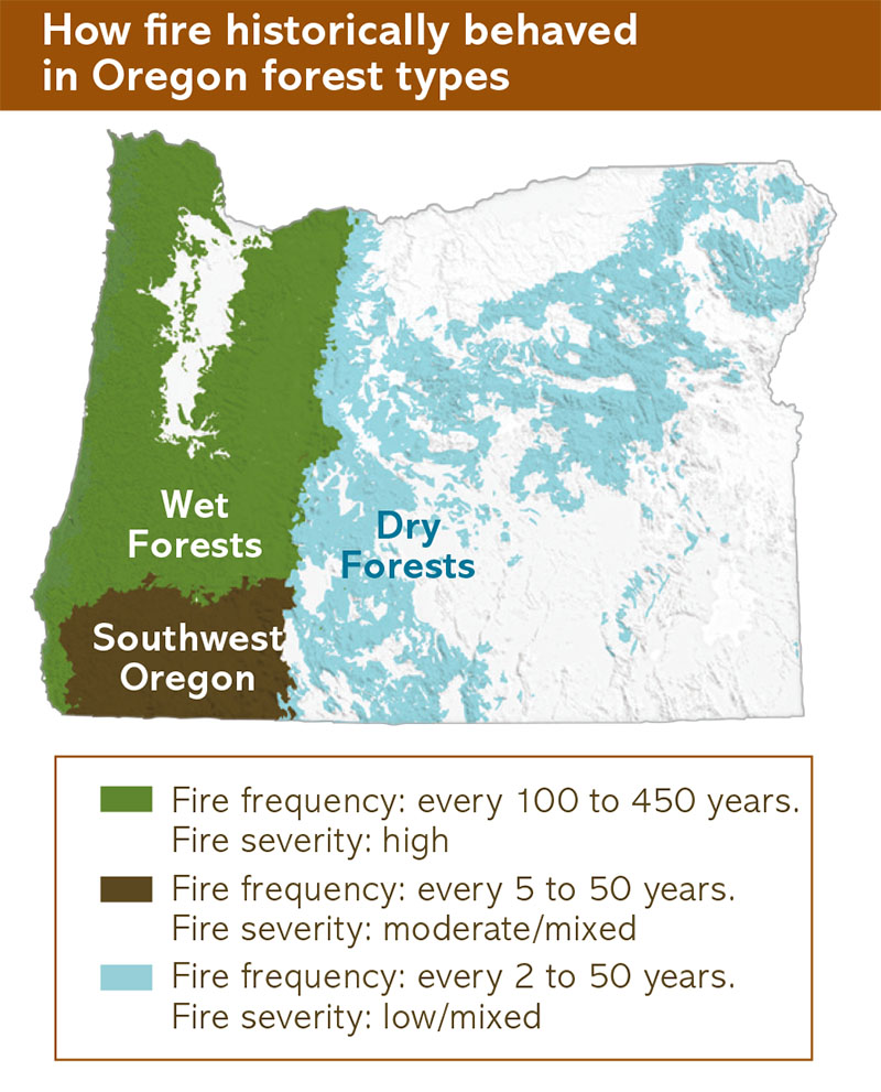 Fire has always been part of forest ecosystems in Oregon, and has shaped forests in various regions of the state differently: