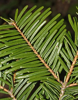 The grand fir features thick foliage of flattened, glossy green needles 1-2 inches in length with two white striations on the undersides. Cones typically measure 3-5 inches long and 1-2 inches wide with 150 short scales that encase small winged seeds. The grand fir’s thin bark makes it susceptible to fire. Without frequent fires, the grand fir would likely be the predominant conifer species in old-growth forests on the valley floor.