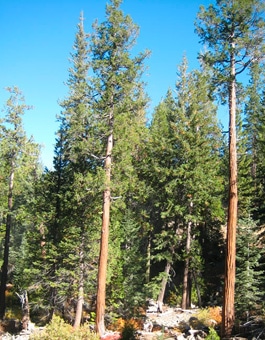 It is not unusual to find charcoal on the bark of older trees indicating that they survived many fires. Mature trees frequently grow to diameters of 50 to 70 inches and heights of 200 feet, and live 500 or more years. The foliage is characterized by flattened, fernlike sprays and small, rounded cones.