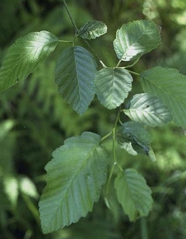 This fast-growing, pioneer species is a medium broadleaf tree up to 120 feet tall. It has a short life span but is well suited to the dynamic environment near streams. The bark is mottled, ashy-gray and smooth, often covered with moss. Leaves are broadleaf ovals that turn yellow in the fall. Male flowers, known as catkins, produce pollen in the early spring. Female flowers, or strobiles, develop into reddish dangling cone-like dry fruit in autumn.