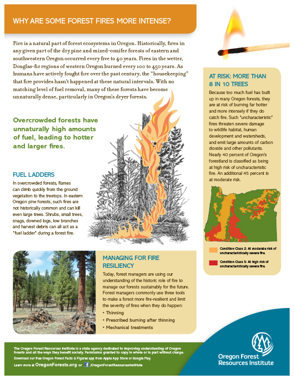 Fact Sheet: Fire Why are some forest fires so intense? This one-page fact sheet explores the risks, causes and potential solutions to unnaturally intense wildfires. One of a series. This item is part of the teacher sampler packet. FactSheet14_Fire.pdf Add to cart