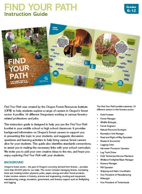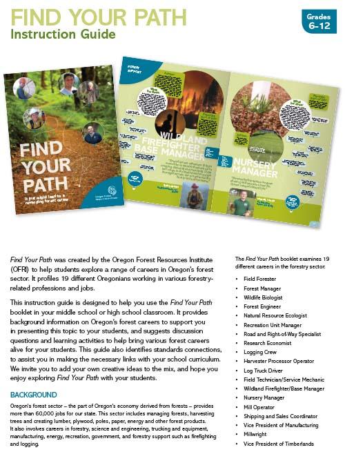 A companion to Find Your Path, the Instruction Guide includes additional activities, lesson plans and background information to help teachers go deeper into the material included in the student publication. The guide also includes a list of additional resources, and it is aligned to state educational standards.