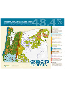 Oregon’s forests are among the most diverse in the world. The colorful 24” by 36” poster includes a map showing the statewide locations where the most common conifer and hardwood tree species are found, plus descriptions of ecological and climatic conditions in which they thrive.