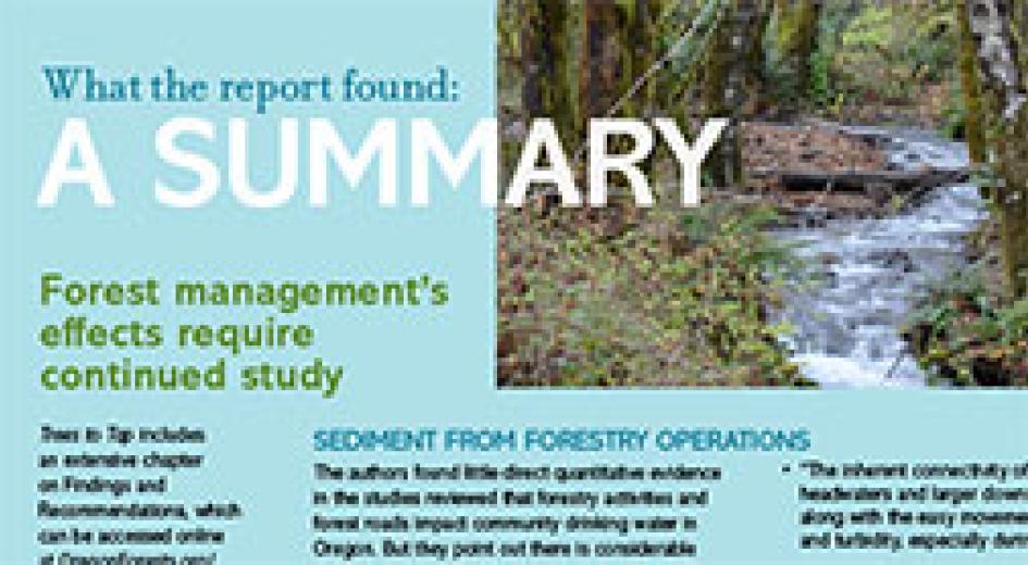 The Oregon State University (OSU) Institute of Natural Resources spent two years leading a science-based review of the effects of forest management on drinking water, yielding a 300+ page report. Their primary findings from that report are available in this one-page summary sheet: